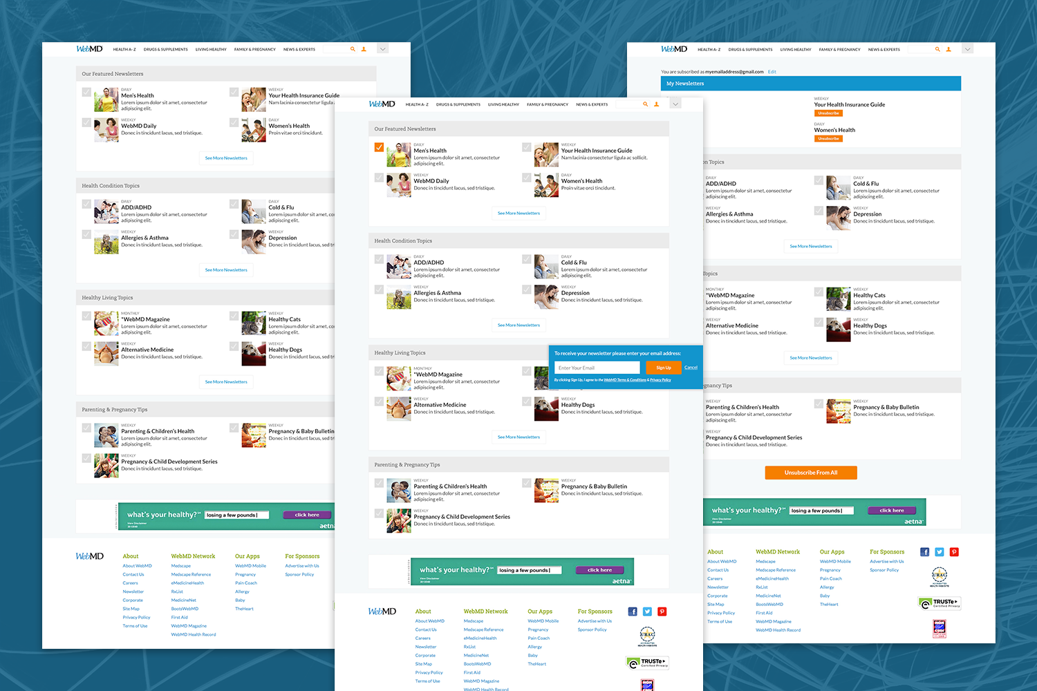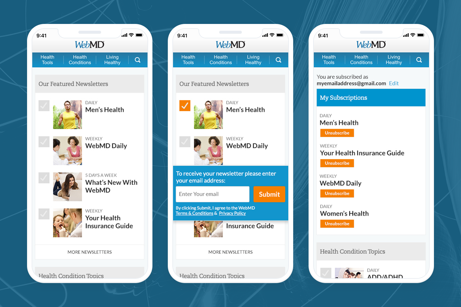 The redesigned WebMD Preference Center features a clean and intuitive layout, ensuring easy navigation across all devices. With responsive design principles in place, customers can explore subscription options and tailor their preferences to their liking.